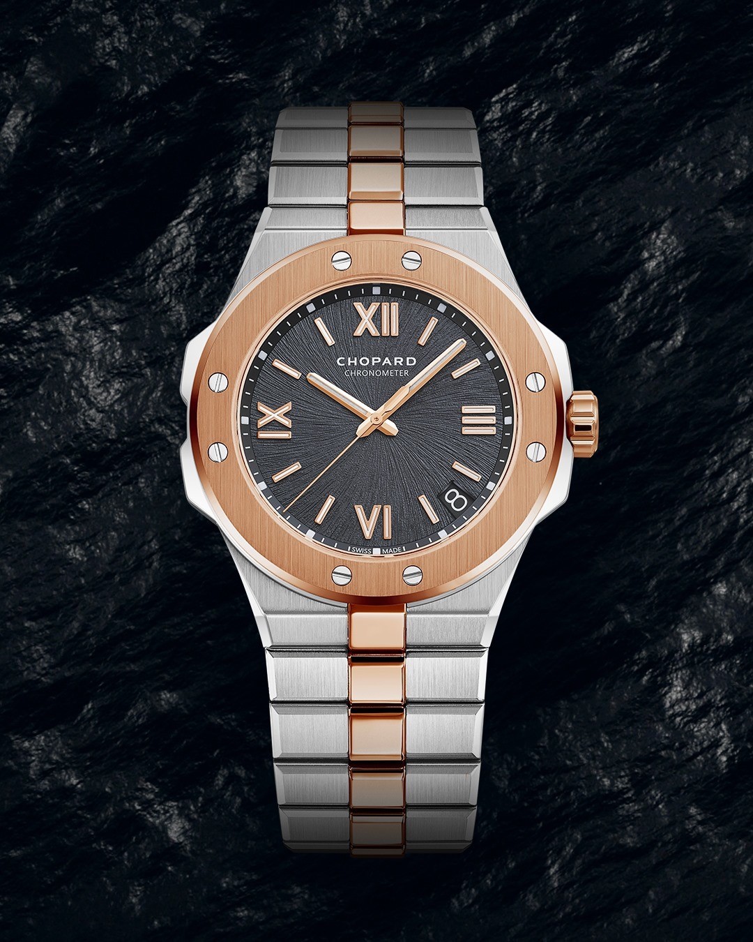 Le Lucent Steel A223 est un métal créé spécialement pour cette collection par Chopard. Il s’agit d’un alliage d’acier présentant trois caractéristiques uniques: il est anti-allergénique, d’une dureté rare et d’un éclat unique. Cet alliage est plus résistant à l’abrasion que l’acier traditionnel et fait preuve ainsi d’une dureté exceptionnelle. La pureté du métal garantit enfin un reflet unique de la lumière.