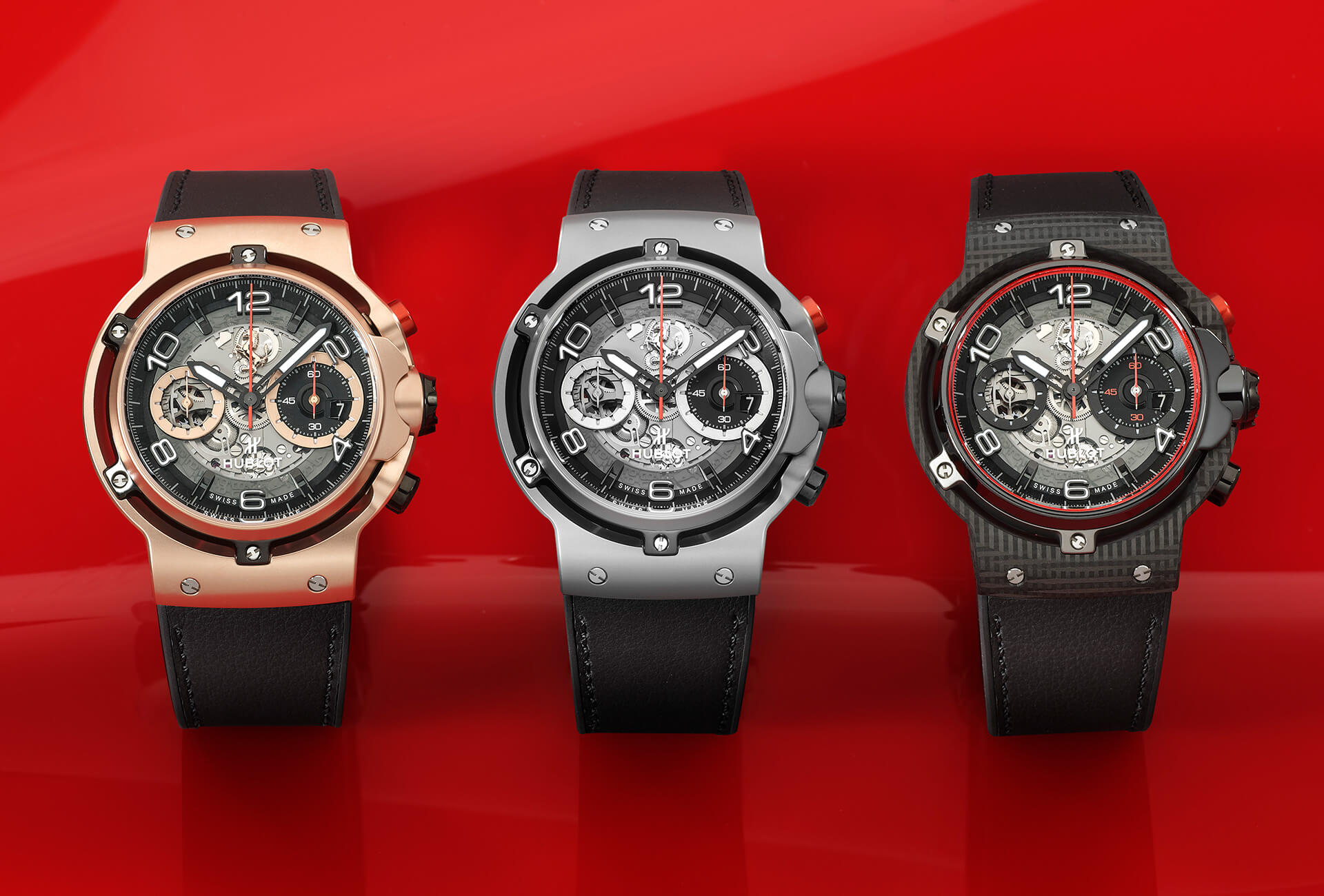 Pour la première fois encore, le célèbre mouvement de manufacture Unico a été intégré dans un boîtier de Classic Fusion de 45 mm de diamètre. Il s’agit du deuxième calibre chronographe maison dévoilé en 2018 (HUB1280). Protégé par quatre brevets, ce mouvement chronographe flyback à remontage automatique de 4 Hz (28’800 A/h) et roue à colonnes visible côté cadran, présente une fiche technique de champion avec notamment une épaisseur de seulement 6,75 mm et une réserve de marche de 3 jours très utile au quotidien. Totalement nouvelle, la Classic Fusion Ferrari GT se décline en trois versions de boîtier : Titane (édition limitée de 1’000 pièces), King Gold (édition limitée de 500 pièces) et Carbone 3D (édition limitée de 500 pièces).